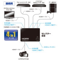 [商品名] HDMIセレクター 4ポート 黒|AV-S04S-K 05-0577
