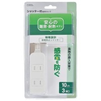 電源タップ シャッター付 3個口 10m|HS-TS310PBT-W 00-6955