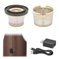 ■ 付属品:ブラシ/すき間兼用ノズル、充電コード(USB Type-A/Type-C、コード長約0.9m)、USB−AC電源アダプター、保証書付取扱説明書