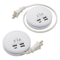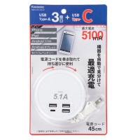 USB ACチャージャー TypeA×3+TypeC 45cm コード巻取式|SMP-U3C51E3-W 00-1228