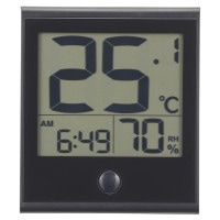 温度が見やすい温湿度計 時計機能付き ブラック|TEM-210B-K 08-1447