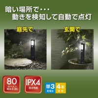 土にさして使うLEDガーデンライト 明暗・人感センサー 80ルーメン|LS-B80GS-3 06-4106