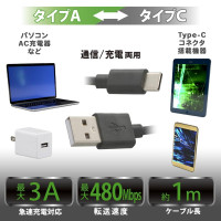 USBケーブル2.0 タイプA-タイプC 1m|SMT-LC1M-K 01-7238