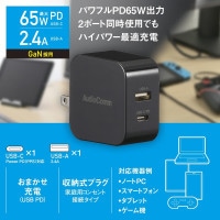 [商品名] AudioComm USBチャージャー 65WPD対応USB-C+USB-A|MAV-AP265N 03-6175
