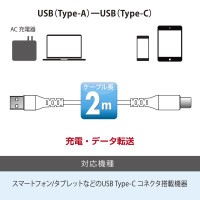 [商品名] AudioComm Type-Cケーブル USB-A to USB-C 2m ホワイト|SMT-L20CAS-W 01-7130