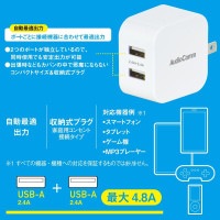 ● USB Type-A×2ポート搭載、最大出力4.8A