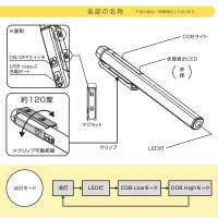 ■ 光束:LED灯…約120 lm、COB Highモード…約140 lm/COB Lowモード…約70 lm