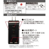 ■ 口数:USB充電ポート2個口+ACコンセント3個口