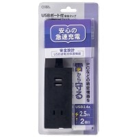 USBポート付電源タップ 雷ガード 2個口/2USB 2.5m 黒|HS-TU225M-K 00-4400