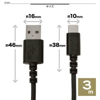 [商品名] ラスタバナナ充電・通信ケーブルType-C/Type-A 3m ブラック|R30CAAC3A01BK 15-8643