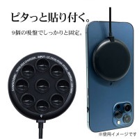 ● 吸盤を機器背面に貼り付けることで充電器と機器が離れて充電が停止することを防ぎ、機器を手に持って操作することもできます