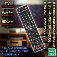メーカーコードを設定しても使用できない操作がある場合に、対象機種のリモコンを利用して操作信号を読み取り記憶して操作させることができます。(各機器用に5つあるカスタマイズボタンを使用)また、TV、チューナー、BDボタン以外のボタンもすべて学習機能に割り当てることができます。