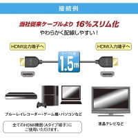 - HDMIやわらかケーブル スリムタイプ ハイスピード 1.5m|VIS-C15HDS-K 05-0557