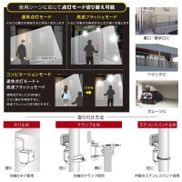 ■ センサー:検知方式…焦電型赤外線センサー、検知範囲…最大約140°最長約8m(取り付け高さ約2mの場合)向き調節可能左右各105°