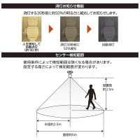 ● 人の動きがなくなると約90秒後に消灯をお知らせするモードに移り、自動消灯します。人が動くと点灯は延長されます。