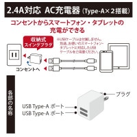 USB Type-A…1ポート最大出力12W(5V/2.4A)、合計最大出力12W(5V/2.4A)