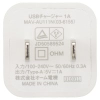 [商品名] AudioComm USBチャージャー Type-A 1A|MAV-AU111N 03-6155