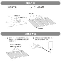 ■ 定格出力:5V/2.4A(合計最大) ※太陽光の強さ、気温によって、充電効率が大きく変化します。設置方法や天候などの充電環境によって、必要な出力が得られない場合があります。