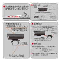 ■ 連続使用時間:HIGH(ハイ)モード…約2.5時間、MID(ミドル)モード…約4時間、FLASH(点滅)モード…約50時間