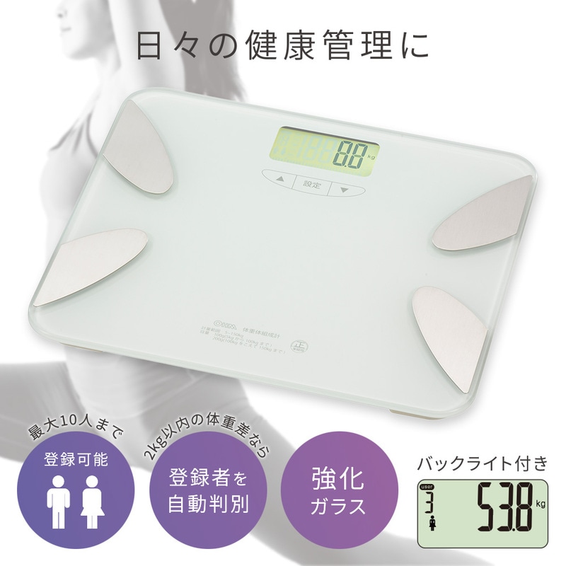 体重体組成計 バックライト付き ホワイト|HB-KG12R2-W 08-1621