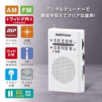 AudioComm ポケットラジオ AM/FM ホワイト|RAD-P380S-W 03-0982