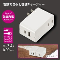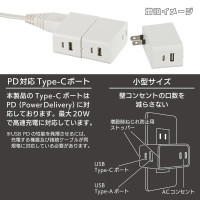 [商品名] 増設できるUSBチャージャー 3.4A PD対応 ホワイト|HS-A1U2PD-24W 00-1099