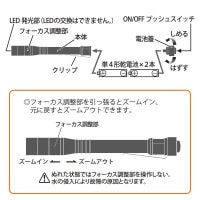 ● スライドフォーカス機能付き電池式LEDフラッシュライト