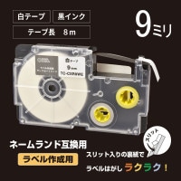テープカートリッジ 9ミリ 白テープ 黒インク |TC-CXR9WE 01-7807