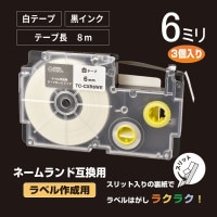 テープカートリッジ 6ミリ 白テープ 黒インク 3個入|TC-CXR6WE-3P 01-7812