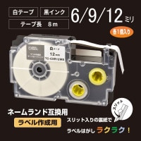 テープカートリッジ 6/9/12ミリ 白テープ 黒インク 各1個入|TC-CXR6/9/12WE 01-7815
