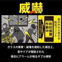 ● 本体の裏面にプリントされた「防犯装置作動中」、窓の外から見えます。