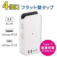 [商品名] フラット壁タップ PD対応30W 4個口 白|HS-AK4UW25 00-1080