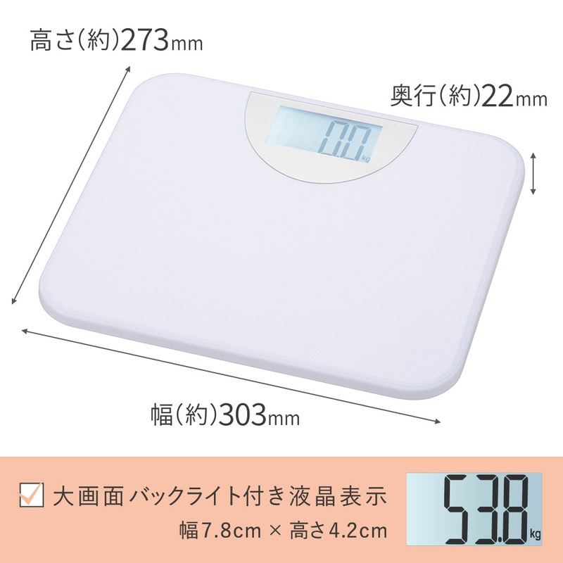 デジタル体重計 大画面バックライト付き ホワイト|HBK-T106-W 08-1248