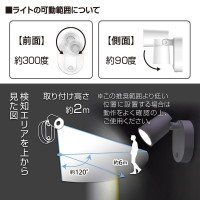 ● 周囲が暗くなり、人を検知すると点灯します。離れてしばらくすると自動消灯します(明暗+人感センサー付き)