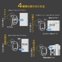 ● 4種類の取り付け方法(マグネット、市販の画鋲、付属ネジとスリーブ、市販の結束バンド)