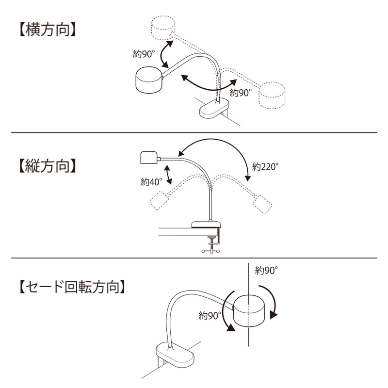 ■ 本体寸法:セード…(約)幅65×高さ45×奥行65mm、アーム…約320mm、クランプ…(約)幅55×高さ117×奥行110mm