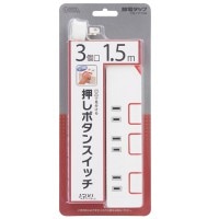 [商品名] 電源タップ 押しボタンスイッチ付 3個口 1.5m|HS-T1175W 00-1175
